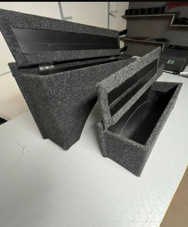 CASSETTONI PORTAOGGETTI IN PANNELLO MULTISTRATO MARINO CON SPORTELLO NAPRIBILE RIVESTITI DI MOQUETTE ADESIVA.  COMPATIBILI CON SAMURAI/SJ/SANTANA.DISPONIBILI SIA PER MODELLO CABRIO CHE BERLINA. Larghezza totale cm17